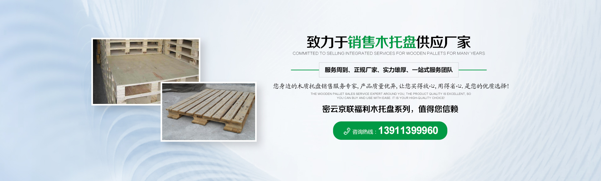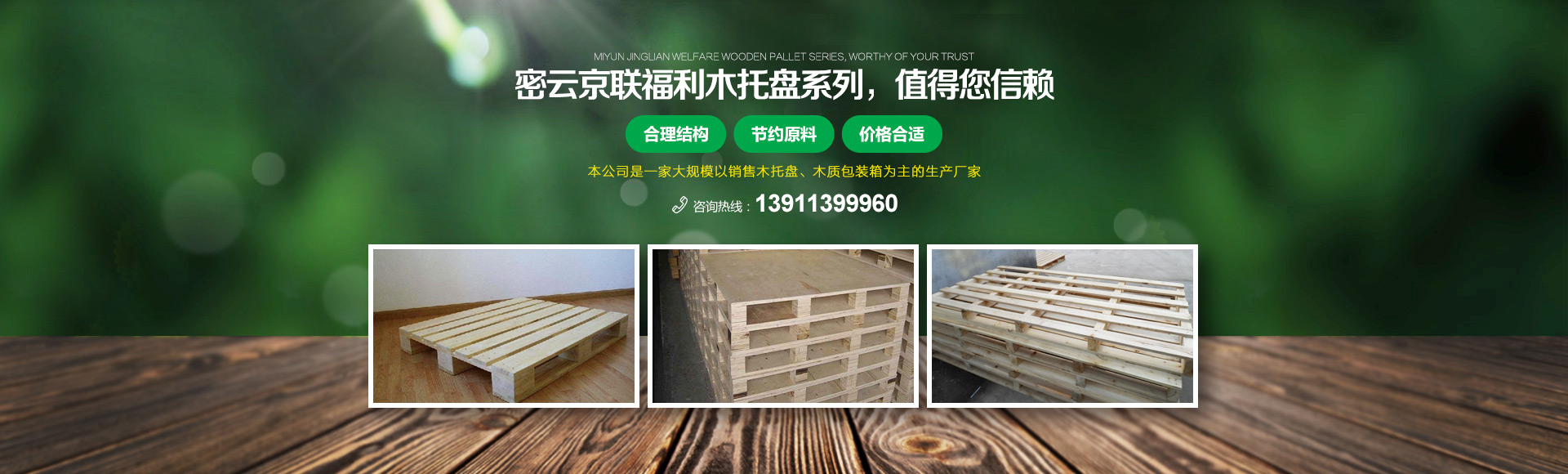 北京京聯(lián)國順木制品有限公司 (原北京市密云縣京聯(lián)福利木制品廠)成立于1993年,位于北京市密云縣西田各莊鎮(zhèn)蒼頭村,占地約5000平米。我公司工廠是一家大規(guī)模以銷售木托盤為主的生產廠家。本工廠是一家直接采購原木,按客戶要求生產規(guī)格尺寸的托盤,我公司工廠位于河北省承德市有著木材加工點,可以做到,從山上的木頭下山到客戶手中的托盤都是一手貨,減少了中間商的費用,所以我公司售出的產品對北京這個龐大的市場來說在同樣的規(guī)格尺寸的托盤來說價格比較占優(yōu)勢。